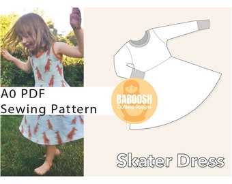 A0 Pdf Kids Adults Jersey Dress Sewing Pattern Skater Dress Etsy Uk
